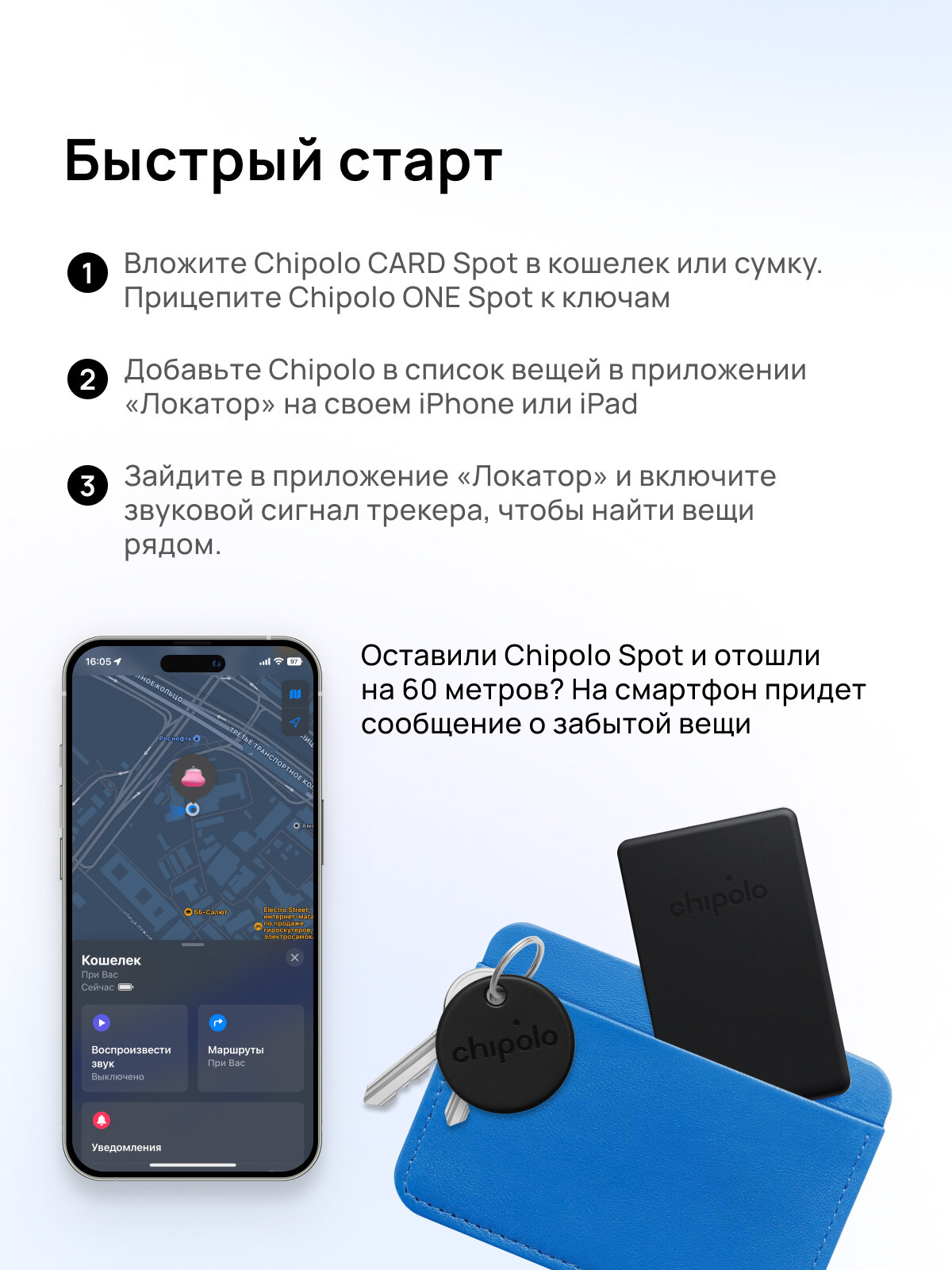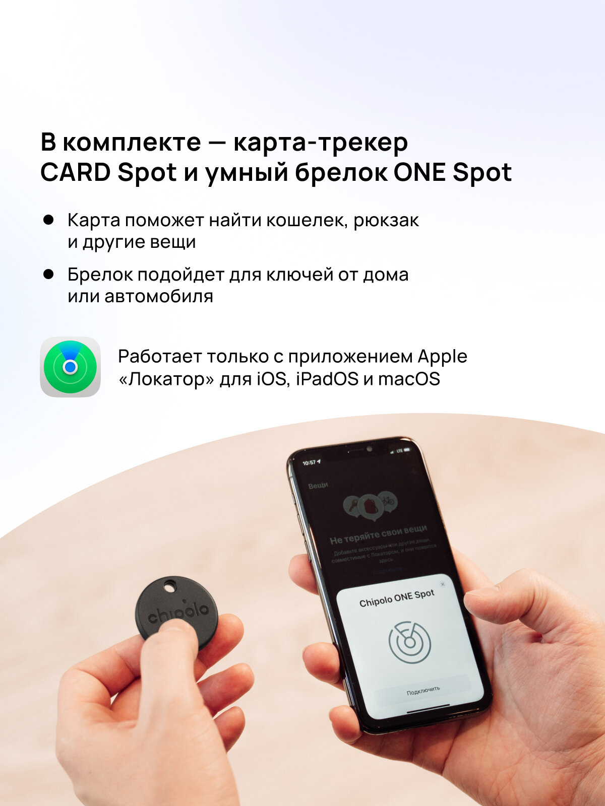 Комплект из умного брелка и карты Chipolo Spot BUNDLE для приложения Apple Локатор (Черный): сравнение цен, характеристики, фото, актуальное наличие и цены.
