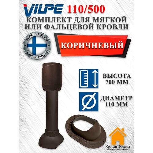Комплект канализационного выхода на крышу Vilpe 110/500 для мягкой и фальцевой кровли Коричневый: сравнение цен, характеристики, фото, актуальное наличие и цены.