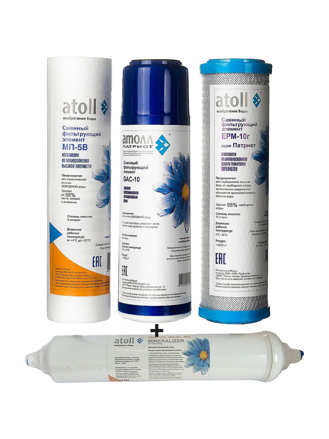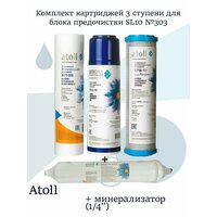 Комплект картриджей 3 ступени для блока предочистки SL10 №303 + Минерализатор (1/4") SL10 Atoll