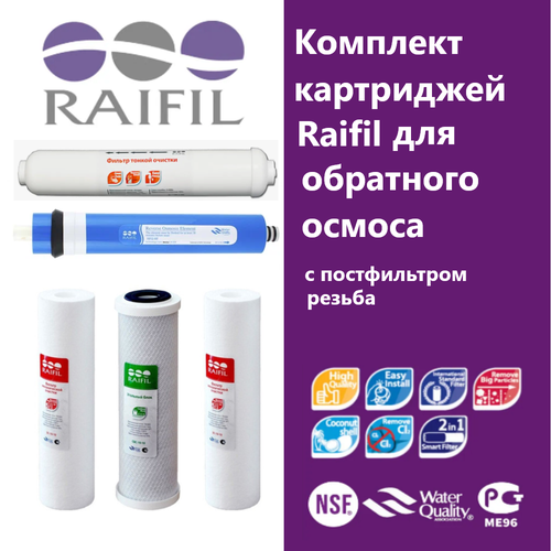 Полный комплект картриджей Raifil для замены 5 ступеней очистки в бытовых фильтрах с обратным осмосом