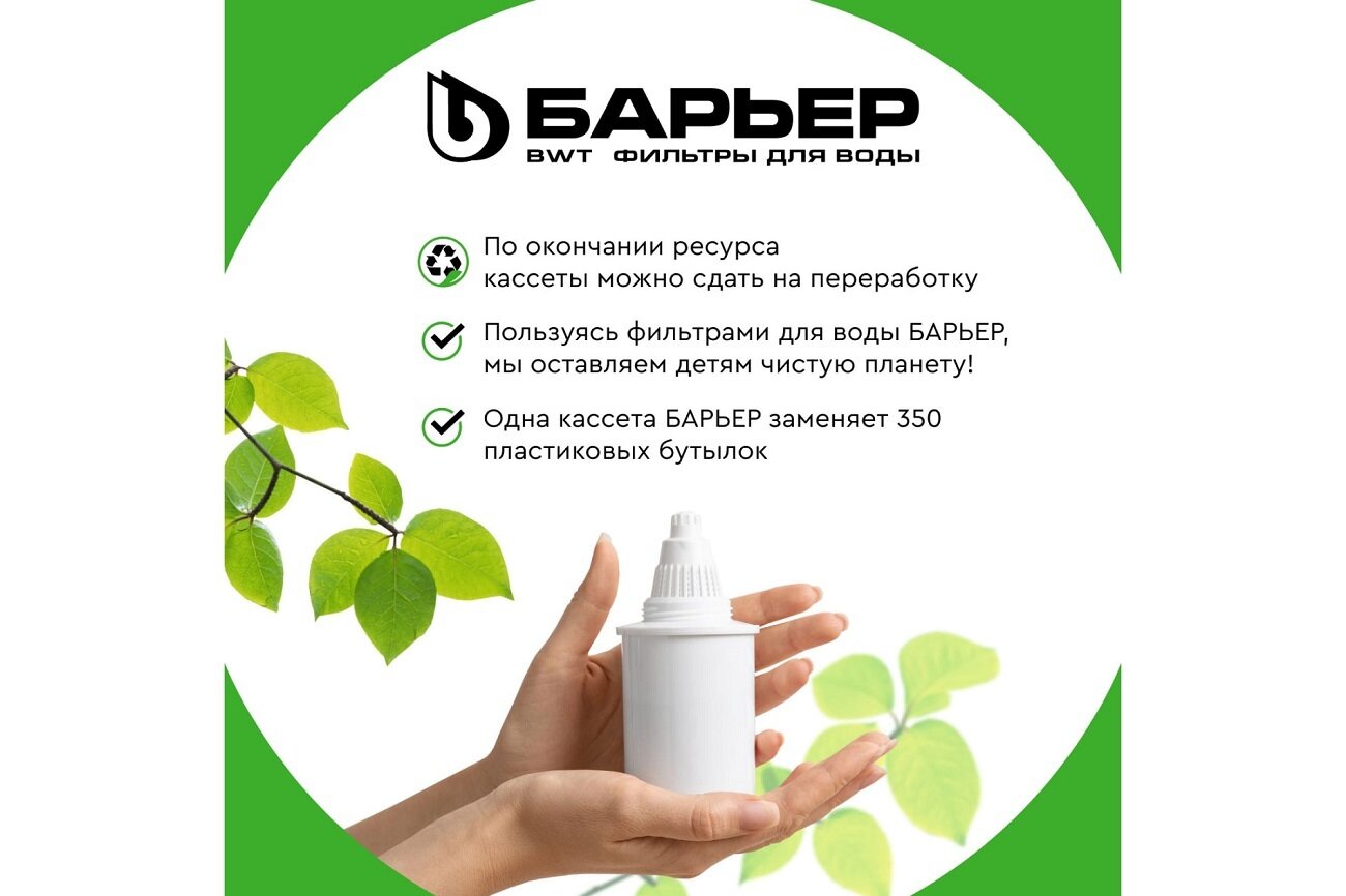 Одна кассета БАРЬЕР способна заменить несколько сотен пластиковых бутылок. По окончанию ресурса кассеты можно сдать на переработку.