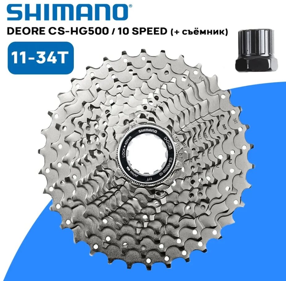 Комплект. Кассета Shimano Deore CS-HG500 на 10 скоростей, 11-34T, серебристая, без коробки (OEM) + съемник кассеты в подарок: сравнение цен, характеристики, фото, актуальное наличие и цены.