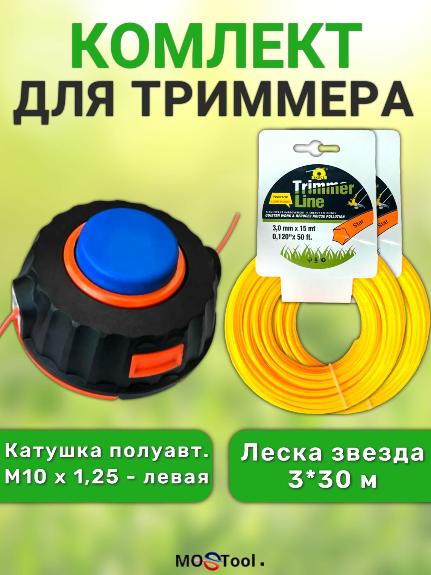 Комплект: катушка для триммера полуавтоматическая М10х1,25 левая резьба + леска звезда 3 мм х 30м: сравнение цен, характеристики, фото, актуальное наличие и цены.