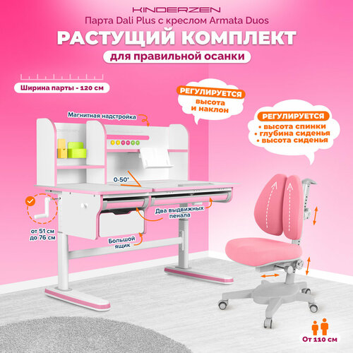 Купить Комплект Kinderzen парта + кресло, цвет белый/розовый с розовым креслом с доставкой по всей России.