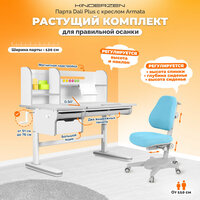 Комплект Kinderzen парта + кресло, цвет белый/серый с голубым креслом