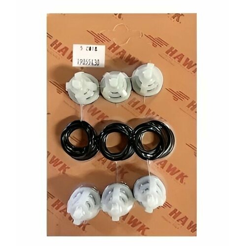 Полный ремкомплект из 6 (шести) клапанов Hawk, шести резинок под клапана и шести резинок под крышки клапанов. Оригинал, италия. Совместимость с помпами Hawk: Серия NMT 200 бар (NMT1220R, NMT1520R, NMT1820R, NMT2120R). Серия NPM 250 бар (NPM1525R, NPM1525RN). Серия MT (MT H306, MT H306I, MT H306UV). Производство Италия.