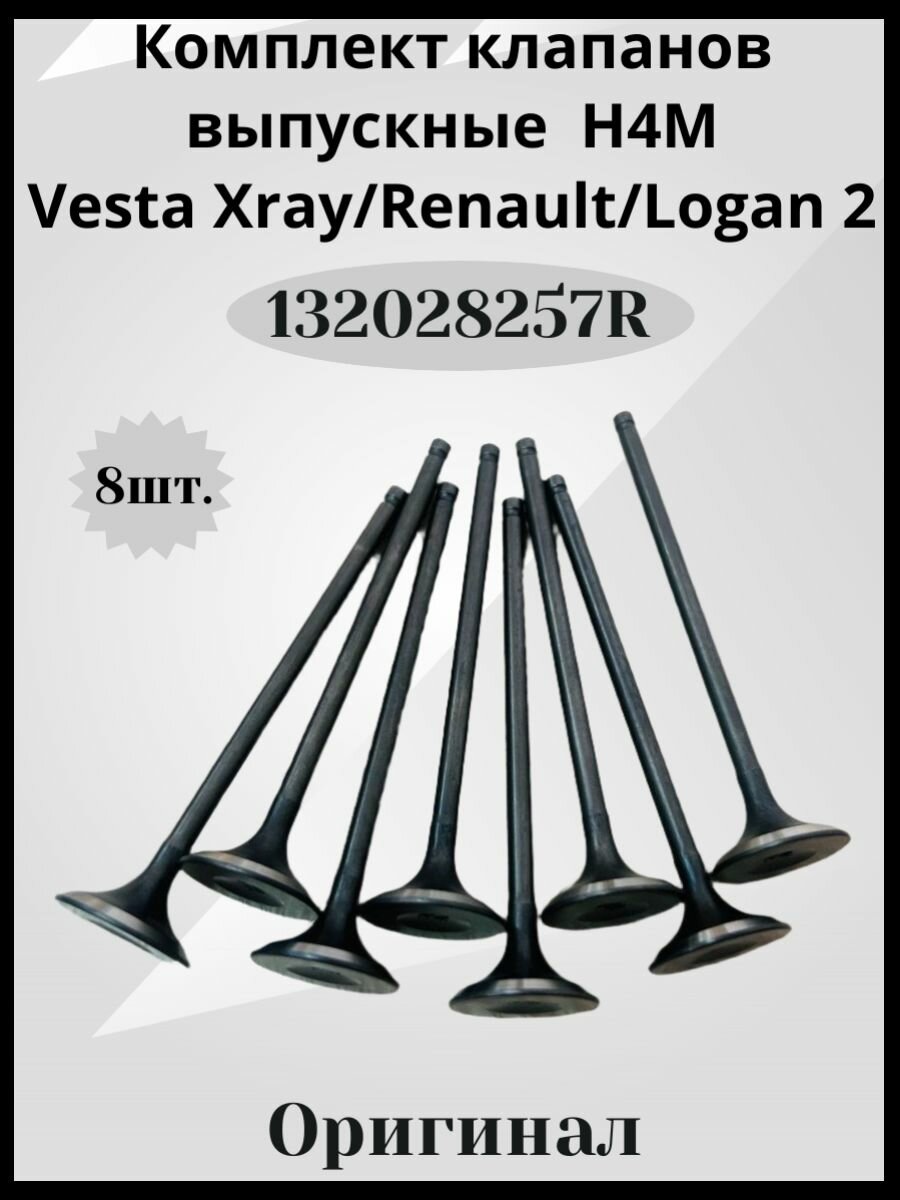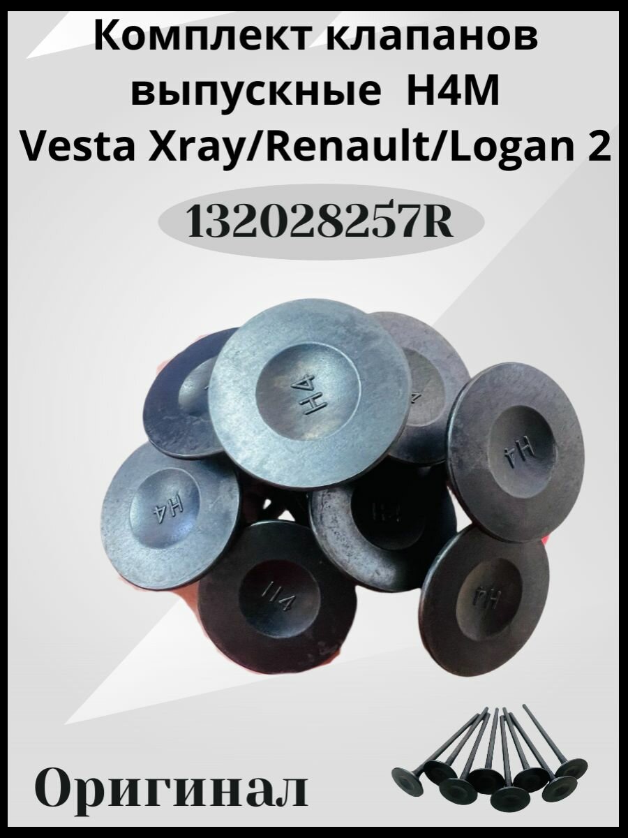 Комплект клапанов выпускные H4M-8шт.( VESTA, XREY, RENAULT, LOGAN2)-132028257R оригинал: сравнение цен, характеристики, фото, актуальное наличие и цены.