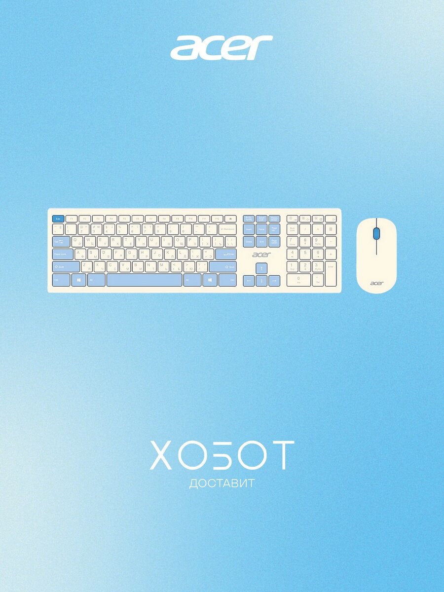 Комплект клавиатуры и мыши Acer OCC205 бело-голубой: сравнение цен, характеристики, фото, актуальное наличие и цены.