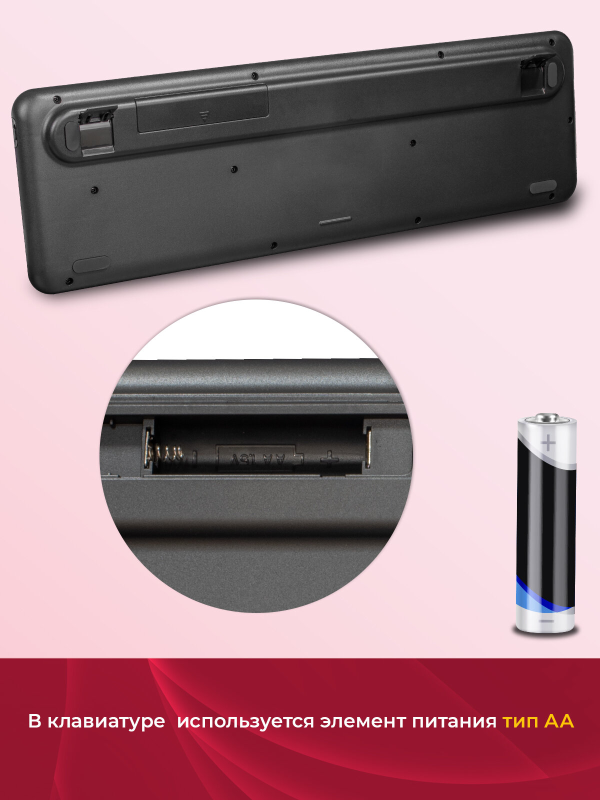 | Особенности | Комплектация Клавиатура Мышь Передатчик (находится в отсеке батареек мыши) 2 батарейки АА Руководство пользователя |