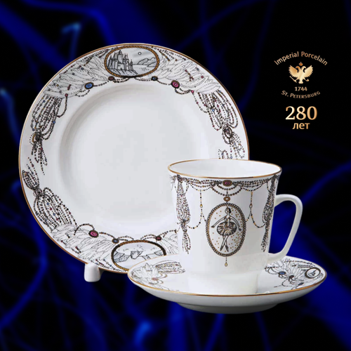 • Комплект входит в серию 3-предметных комплектов Любови Цветковой "Русские балеты". Росписи серии созданы по мотивам самых значительных, по мнению художника, русских балетных спектаклей. Комплекты серии – это образ знаменитых балетов, перенести который на фарфор автору помогли не только личные впечатления, но эскизы декораций и костюмов, выполненных когда-то для оформления всемирно известных спектаклей. Элегантная кофейная пара из фарфора – это не просто посуда, а элемент утончённой сервировки, который делает каждое кофепитие особенным. Классическая чашка с блюдцем фарфоровая подчеркнёт вкус напитка, а её лёгкость и изящество создадут атмосферу уюта и эстетики. Кофейная пара изысканного дизайна добавит элегантности в любую сервировку. Благодаря особой технологии изготовления фарфор тонкий, но при этом прочный и долговечный. Кофейный набор идеально подойдёт для любителей кофе, чая и других горячих напитков. Это отличный подарок на 8 марта для женщины. Порадуйте маму или девушку таким приятным и полезным сюрпризом на праздник весны.