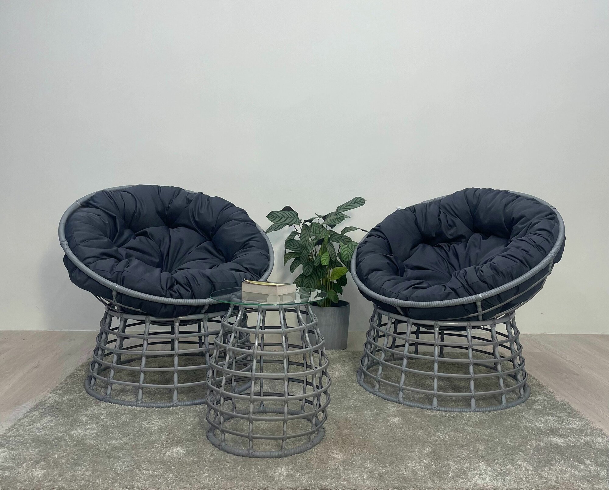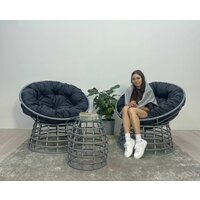 Комплект кофейный со столиком из искусственного ротанга, состоящий из двух кресел, двух подушек и столика украсит любую террасу загородного дома, садовую беседку дачного участка, квартиру, а также интерьер кафе и ресторанов.