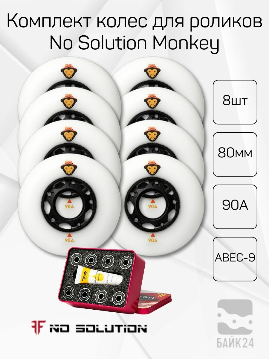 Обновите свои роликовые коньки с комплектом колес No Solution Monkey 80mm/90A! Этот набор включает восемь высококачественных белых колес, спроектированных для городского катания и слалома. Комфортная жесткость 90А, много полиуретана и пухлый профиль делают их удобными для города и фрискейта.