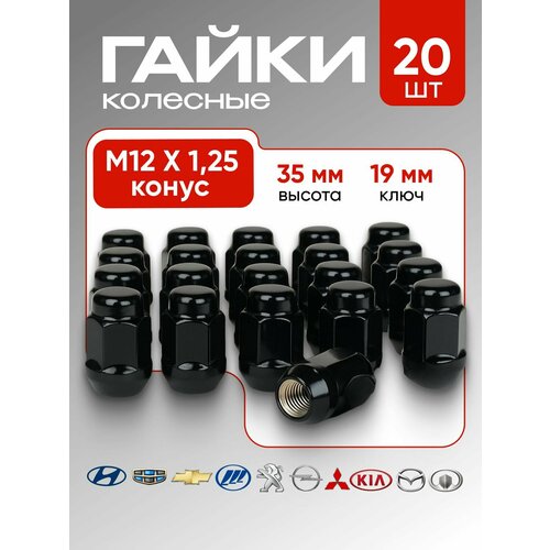 Гайки колесные LS Wheels, черные матовые. М12х1,25 (конус кл.19) h=35 в блистере 20 штук.