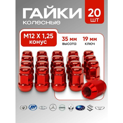 Комплект колесных гаек LS М12х1,5 (конус кл.19) 20 штук, красные: сравнение цен, характеристики, фото, актуальное наличие и цены.