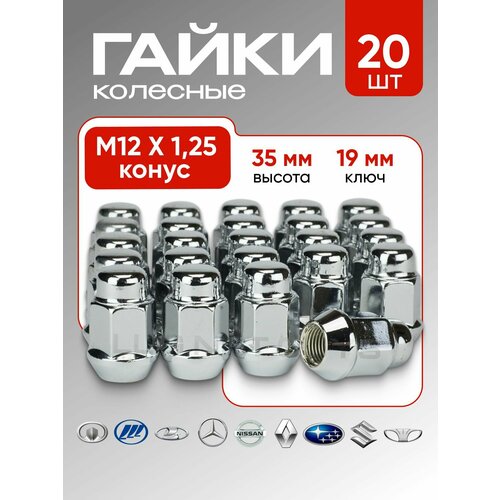 Гайки колесные LS Wheels, хромированные. М12х1,25 (конус кл.19) h=35 в блистере 20 штук.