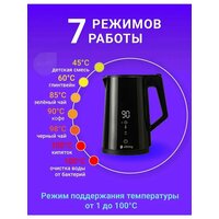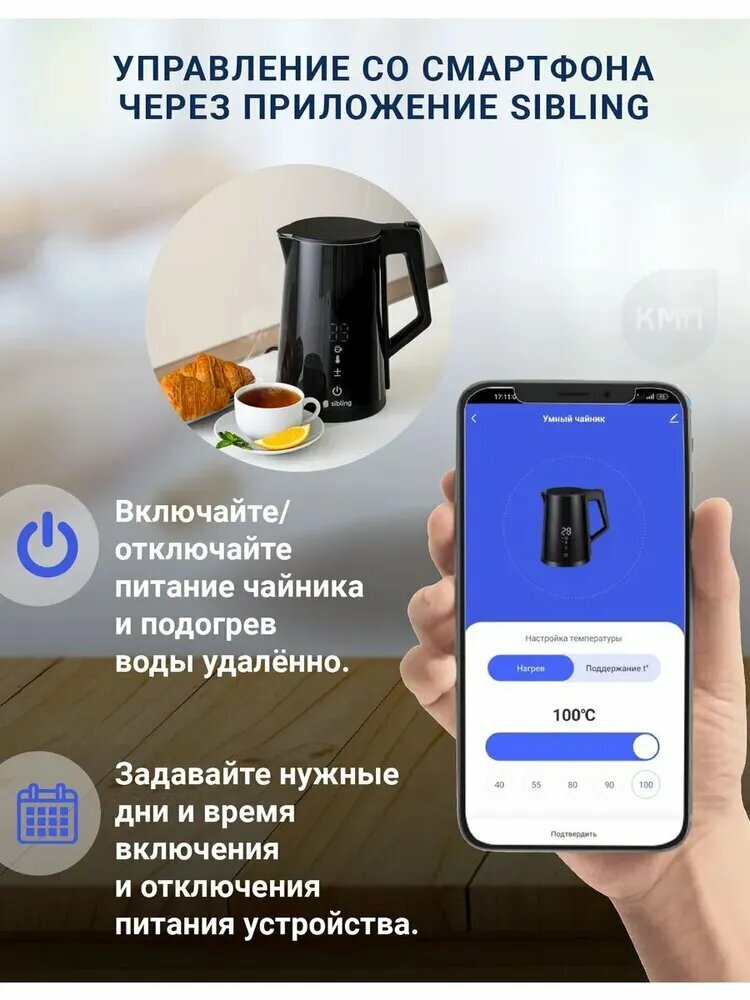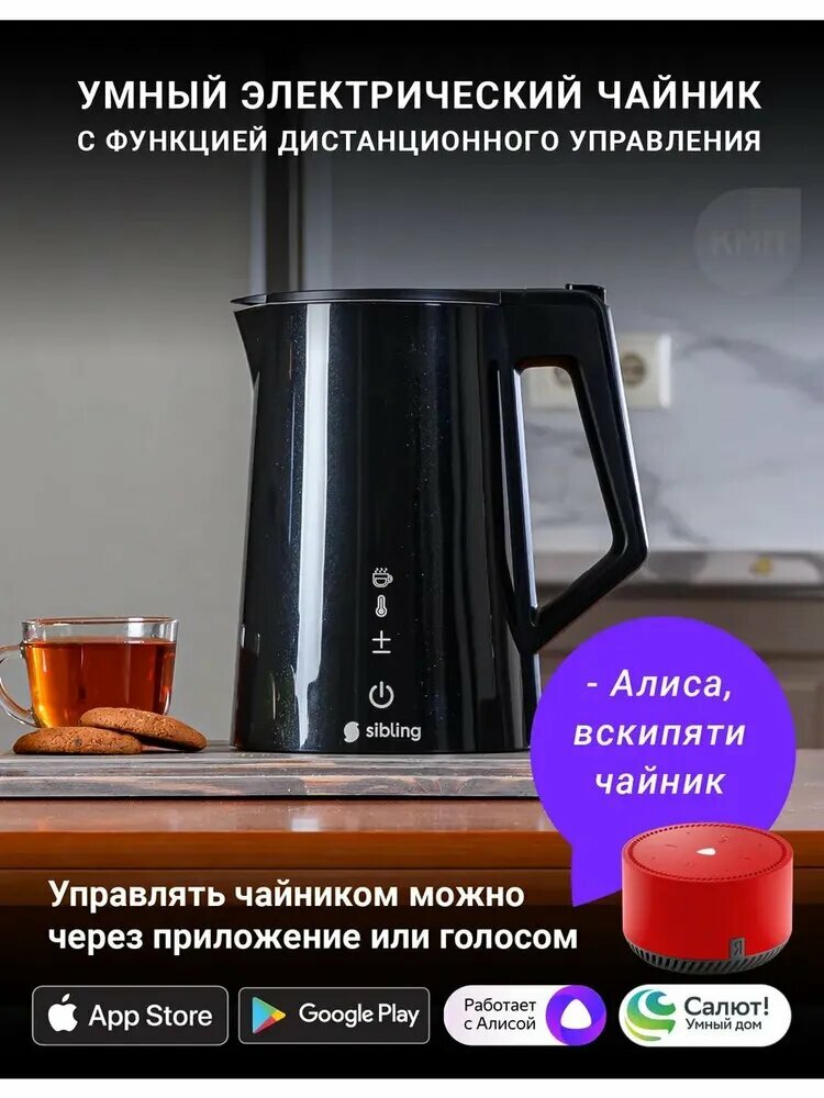 Умный электрический чайник с функцией дистанционного управления. В стильном черном корпусе, нержавеющая сталь.