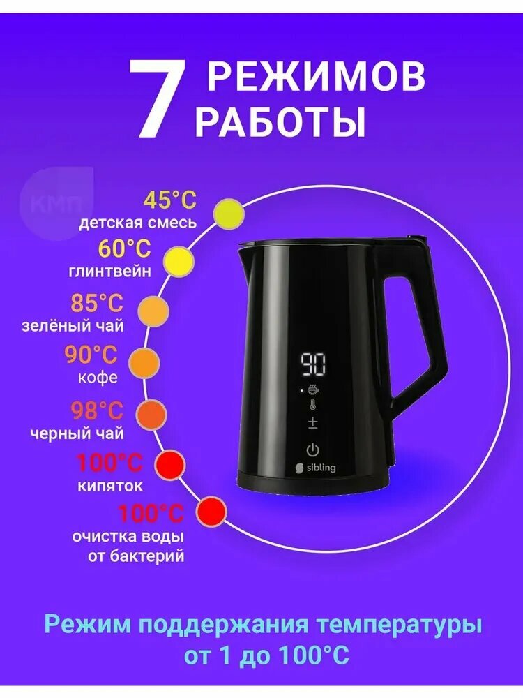 В целях безопасности, электрический чайник Sibling автоматически отключается при отсутствии воды и при снятии с подставки. Умный!