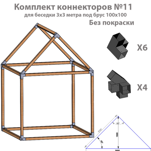 Комплект коннекторов №11 для бруса 100×100 не окрашенный для самостоятельной сборки беседки: сравнение цен, характеристики, фото, актуальное наличие и цены.