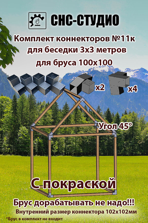 Комплект коннекторов №11к для бруса 100×100 с покраской для самостоятельной сборки беседки: сравнение цен, характеристики, фото, актуальное наличие и цены.