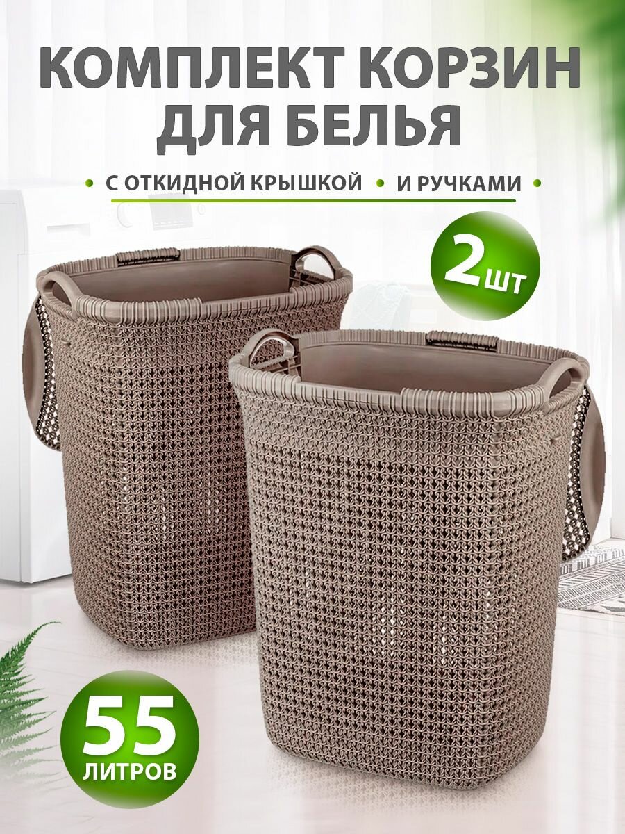 Купить Корзина для белья elfplast «Paola»пластиковая с крышкой 55 л 2 шт, (серо-коричневый) 426 с доставкой по всей России.