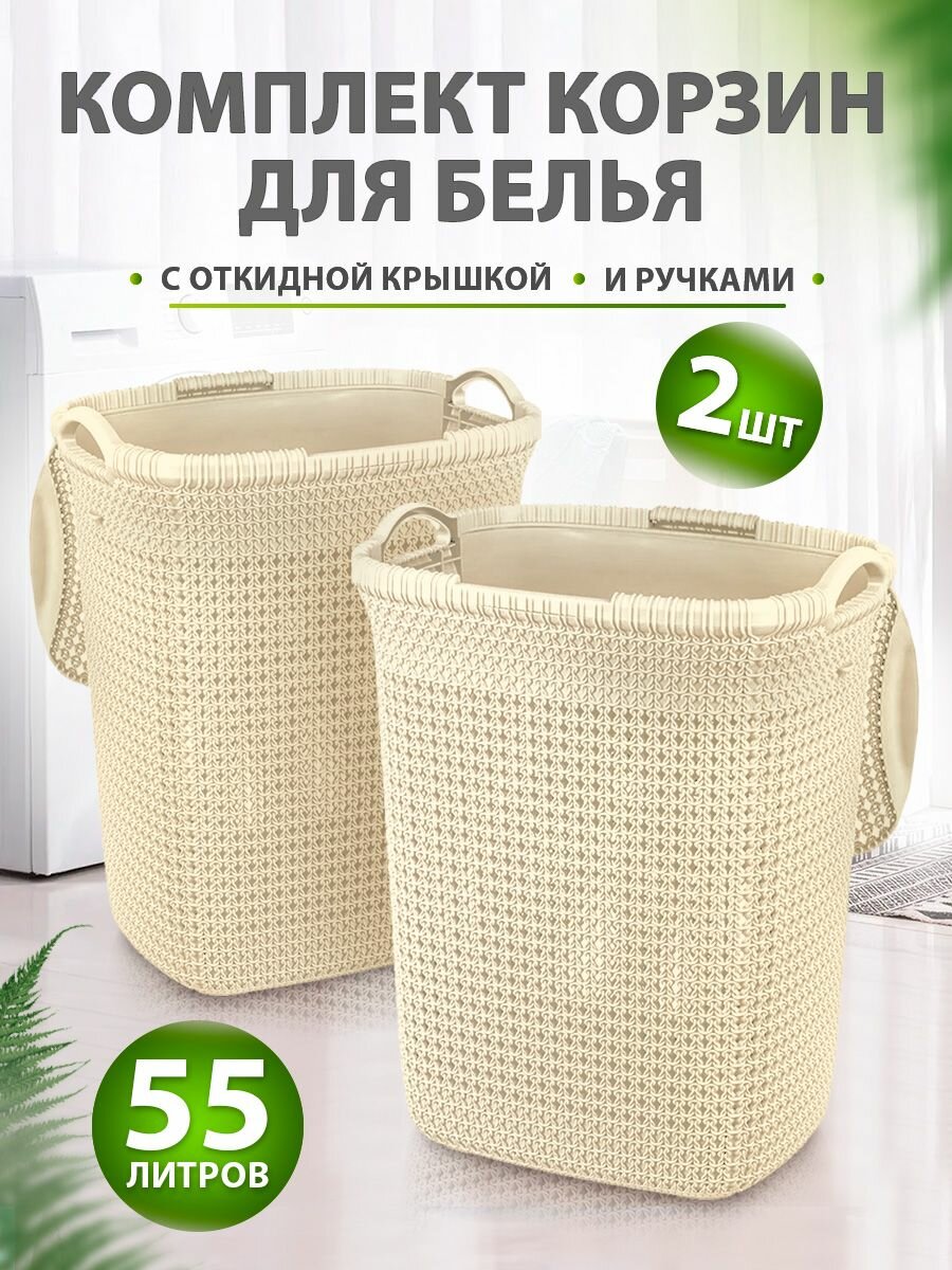 Корзина для белья elfplast «Paola»пластиковая с крышкой 55 л 2 шт, (слоновая кость) 426: сравнение цен, характеристики, фото, актуальное наличие и цены.