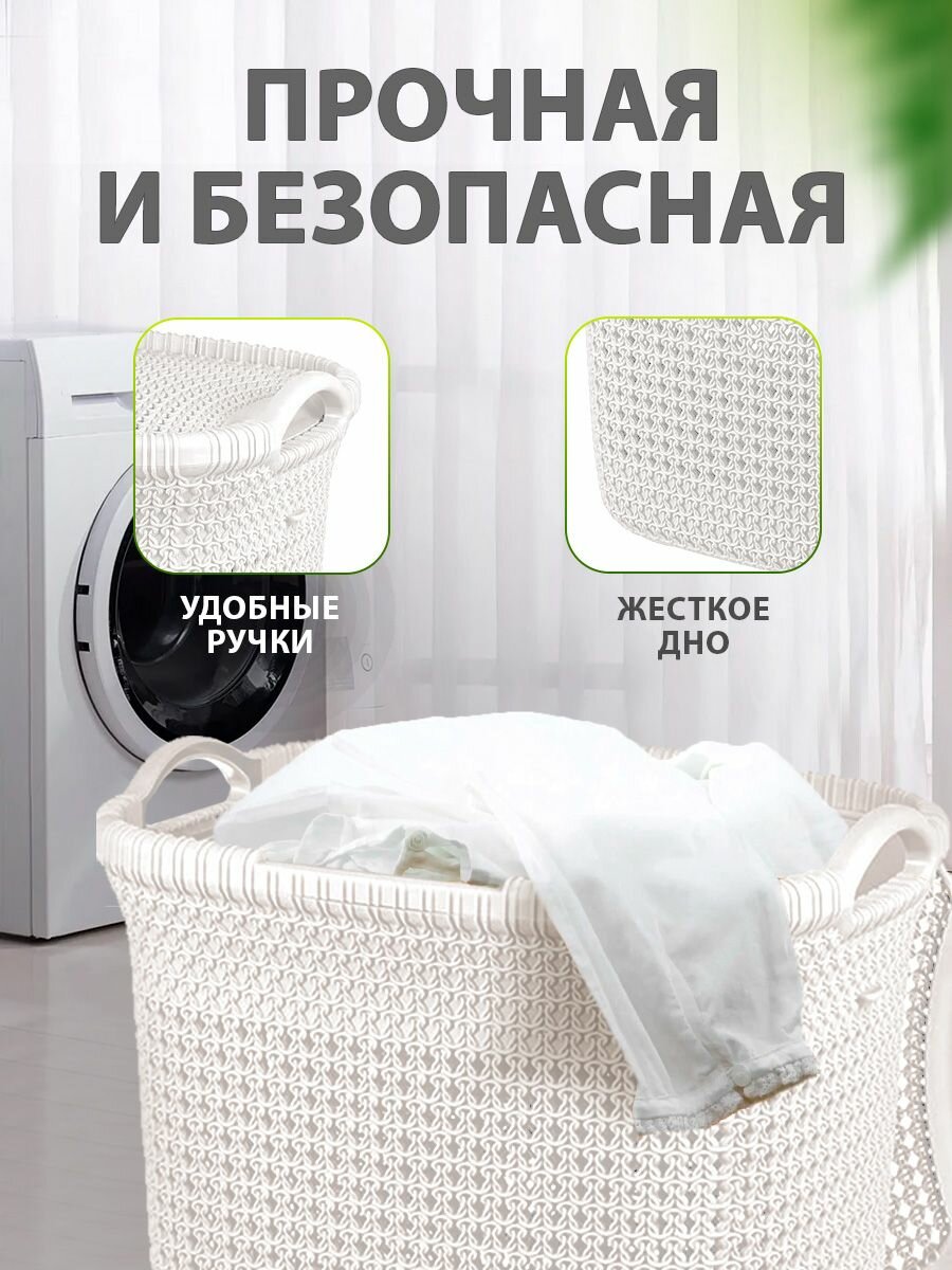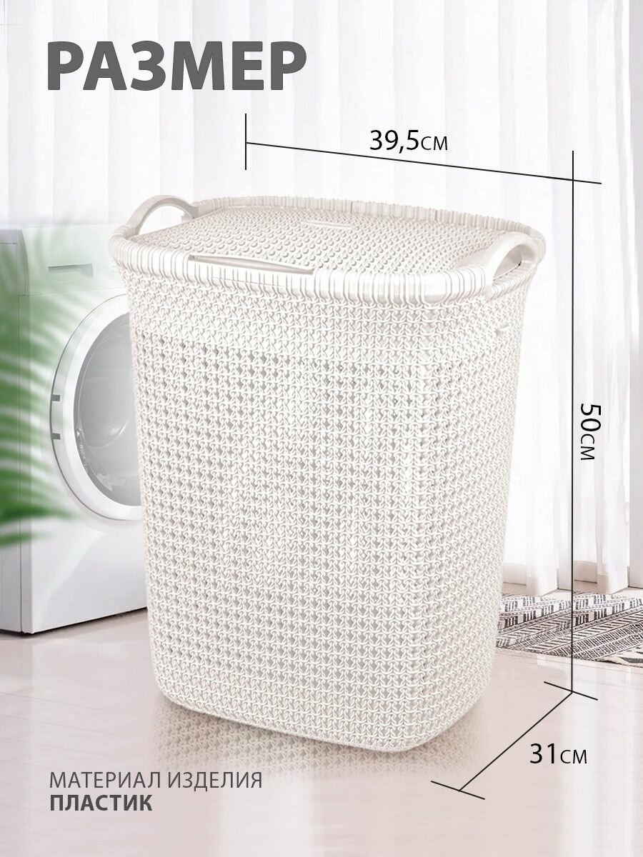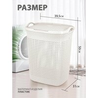 Вашему вниманию предлагается комплект плетеных корзин для чистого и грязного белья в количестве 2х штук. Объем каждой - 37 литров. Ее размер: 39,5x31x50 см. Материал изготовления - пластик, прочный и безопасный. Благодаря перфорации, все содержимое отлично проветривается и не плесневеет. Этот контейнер для хранения вещей позволяет поддерживать чистоту и порядок в ванной. Плотно прилегающая крышка не дает пыли и влаге попадать внутрь. Емкость оснащена ручками для более удобной переноски. Пластиковая бельевая корзиночка легкая по весу: даже полностью наполненную, ее быстро можно переместить в случае необходимости. На выбор имеется несколько расцветок, Вы точно сможете подобрать изделие именно под Ваш интерьер. Лаконичный стильный дизайн под плетенку гармонично впишется в современный дом или квартиру. Она достаточно устойчивая, имеет жесткое дно, не деформируется. Данный аксессуар не подвергается появлению грибка и плесени, а потому модель идеальна для эксплуатации в комнатах с повышенной влажностью. Большой пластмассовый короб - практичный подарок на новоселье. Подходит для детской одежды и полотенец. Еще больше хозяйственных товаров смотрите, перейдя в наш магазин тутси. Желаем приятных покупок!