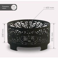 Крышка для костровой чаши, входящая в комплект, защищает от попадания дождя и мусора сверху, также окрашена термостойкой краской. Внимание, данная крышка не предназначена для контакта с пищей.