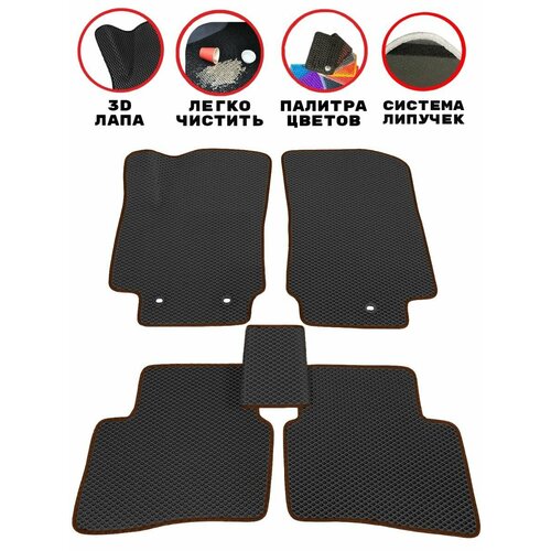 Комплект ковриков EVA/ЭВА для FORD FOCUS II Рестайлинг, (Форд Фокус 2 Рестайлинг), 2008-2011 гг, с 3Д лапой, черный ромб с коричневым кантом: сравнение цен, характеристики, фото, актуальное наличие и цены.