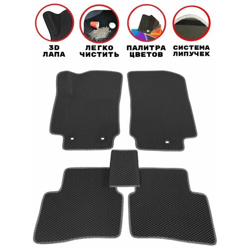 Комплект ковриков EVA/ЭВА для FORD FOCUS II Рестайлинг, (Форд Фокус 2 Рестайлинг), 2008-2011 гг, с 3Д лапой, черный ромб с темно серым кантом: сравнение цен, характеристики, фото, актуальное наличие и цены.
