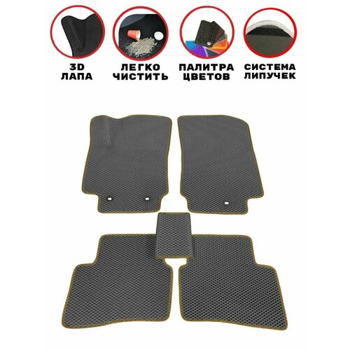 Комплект ковриков EVA/ЭВА для FORD FOCUS II Рестайлинг, (Форд Фокус 2 Рестайлинг), 2008-2011 гг, с 3Д лапой, серый ромб с бежевым кантом: сравнение цен, характеристики, фото, актуальное наличие и цены.