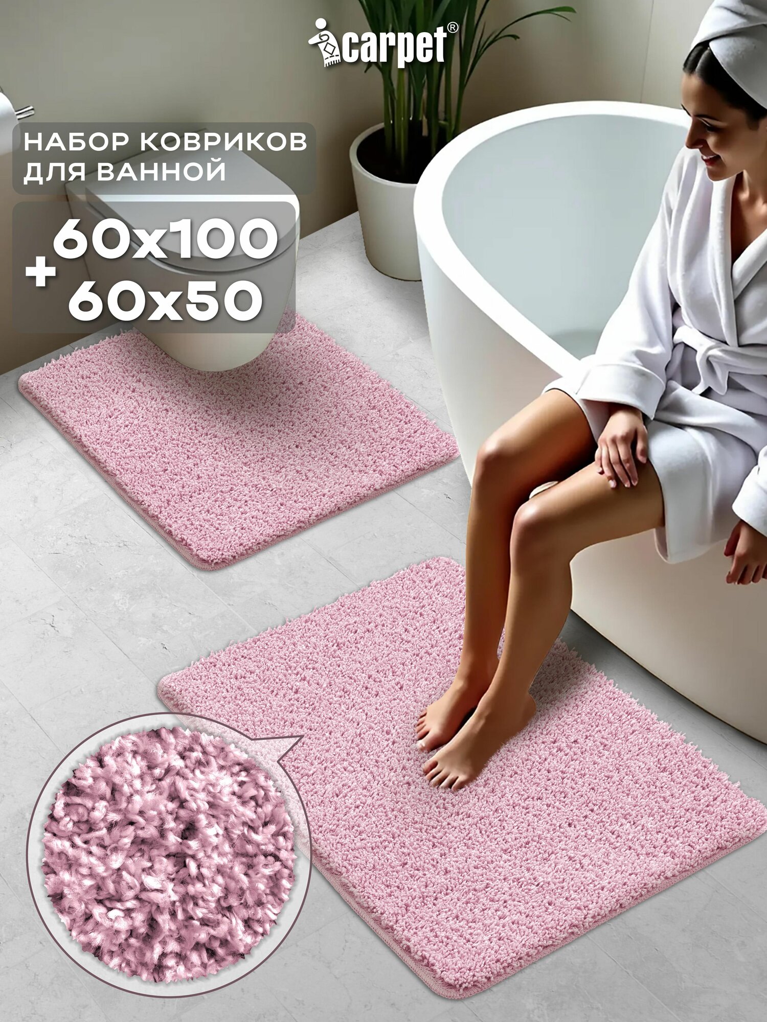 Набор ковриков Icarpet «FRIZZ», для ванной и туалета, антискользящий, 60х100+60х50, пион, 2 шт, быстро сохнет: сравнение цен, характеристики, фото, актуальное наличие и цены.