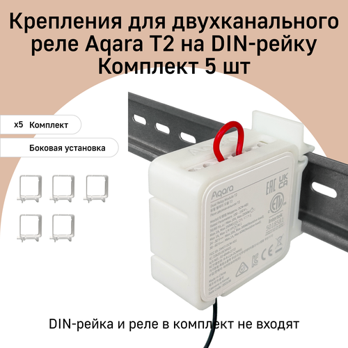 Комплект креплений для двухканального реле Aqara T2 на DIN рейку DHRV-2S, 5 штук, боковая установка