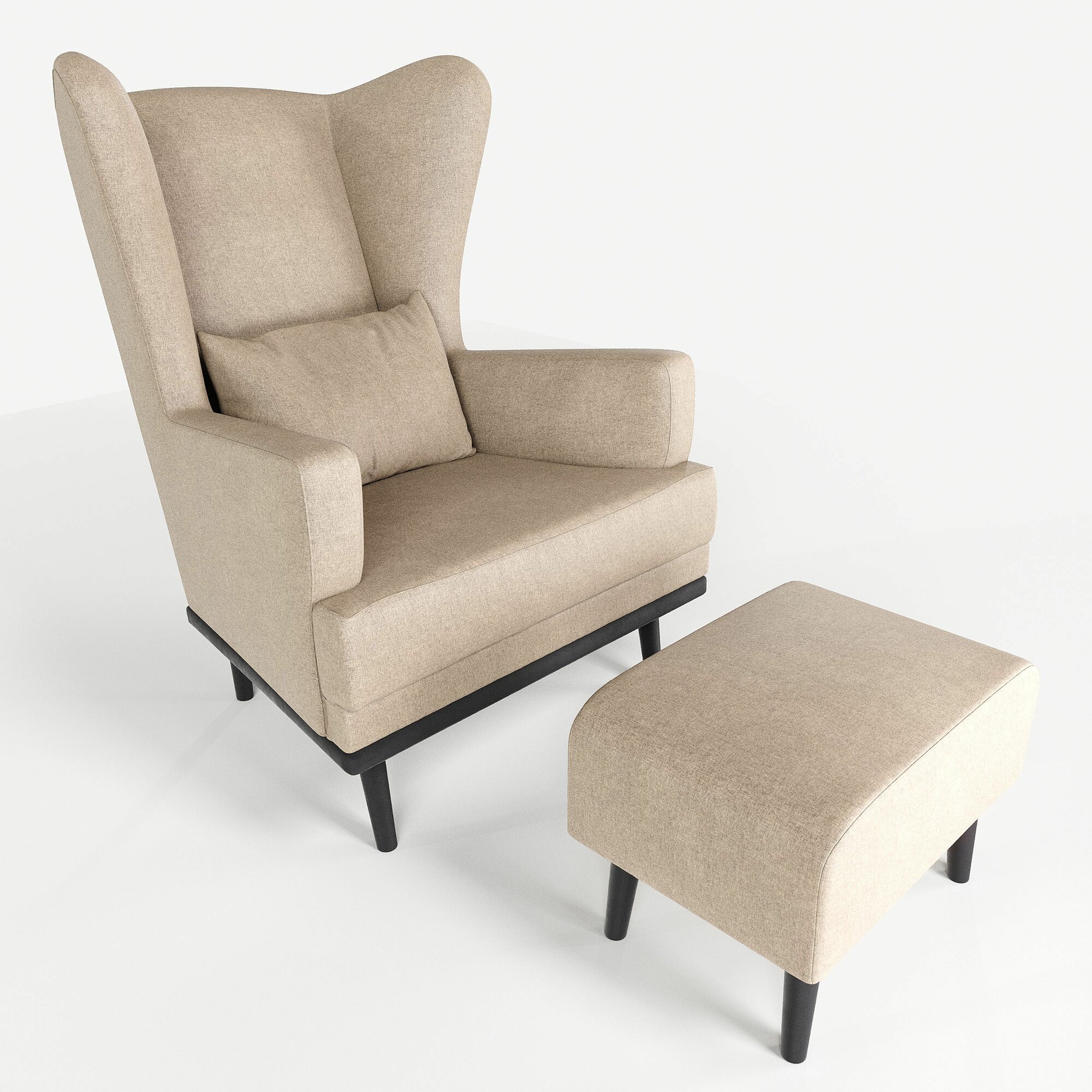 Купить Комплект кресла и пуфа Фантазёр D-2 (Бежевая рогожка) на высоких ножках, для отдыха и чтения книг. В гостиную, балкон, спальню и переговорную комнату с доставкой по всей России.