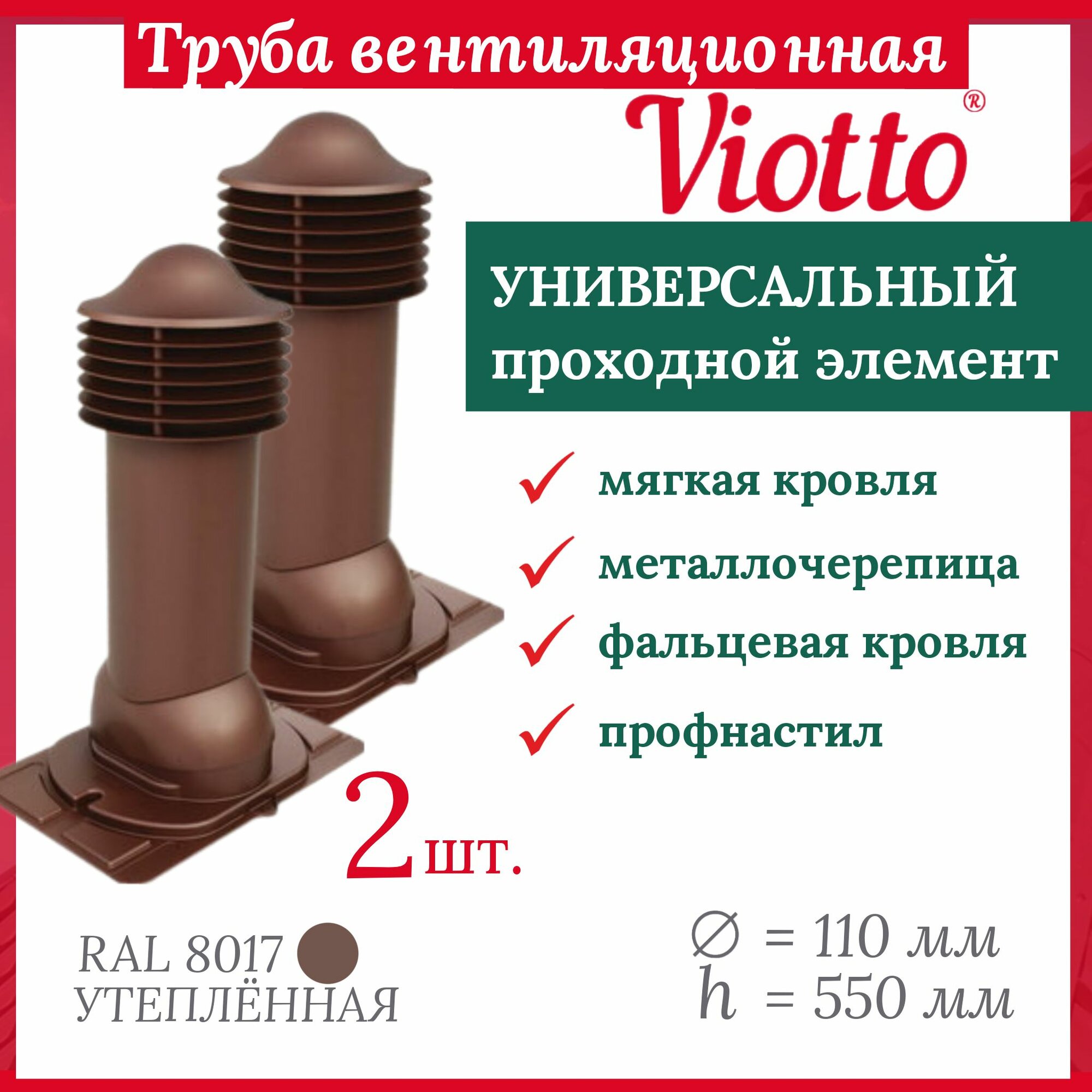 Комплект кровельной вентиляции Viotto 110/550 мм, вентиляционный выход, RAL 8017, 2 шт.: сравнение цен, характеристики, фото, актуальное наличие и цены.