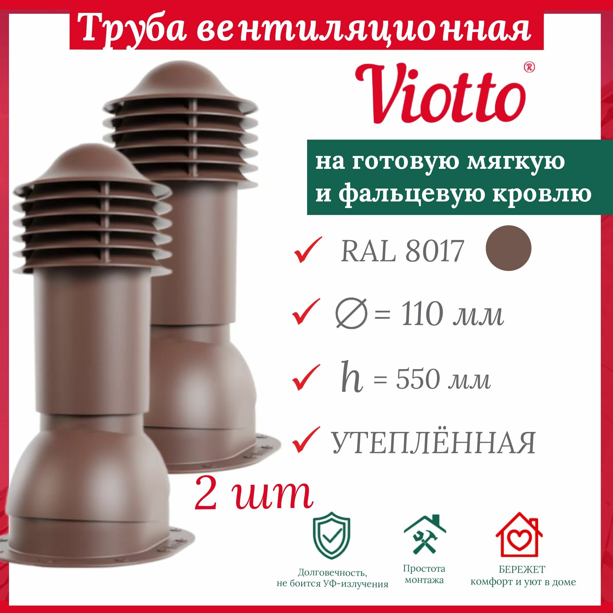 Комплект кровельной вентиляции, Viotto, 110/550 мм, выход вентиляционный утепленный, RAL 8017, 2 шт.: сравнение цен, характеристики, фото, актуальное наличие и цены.