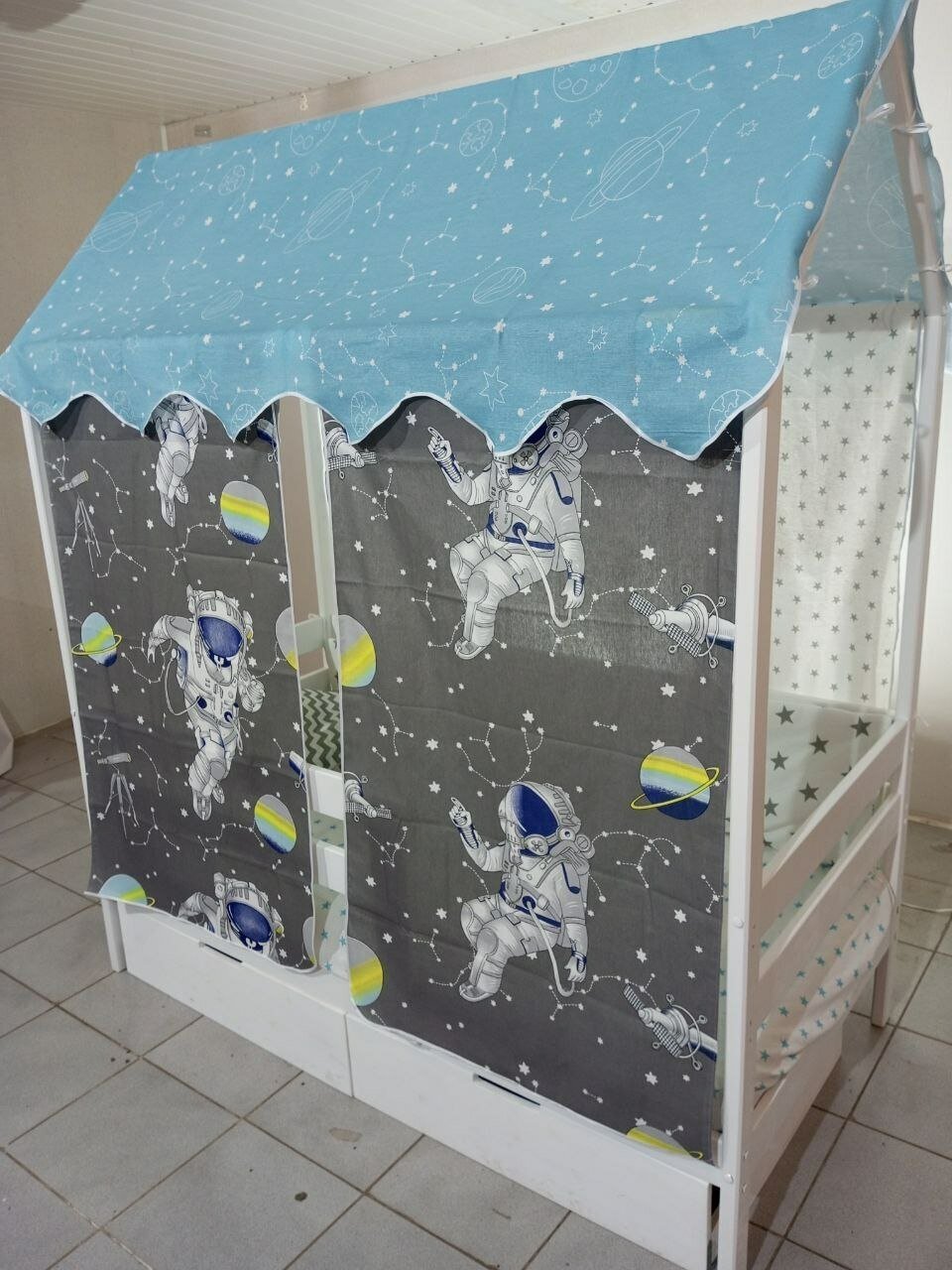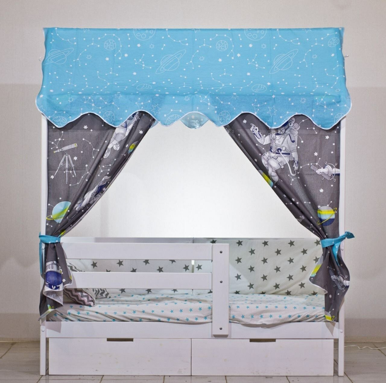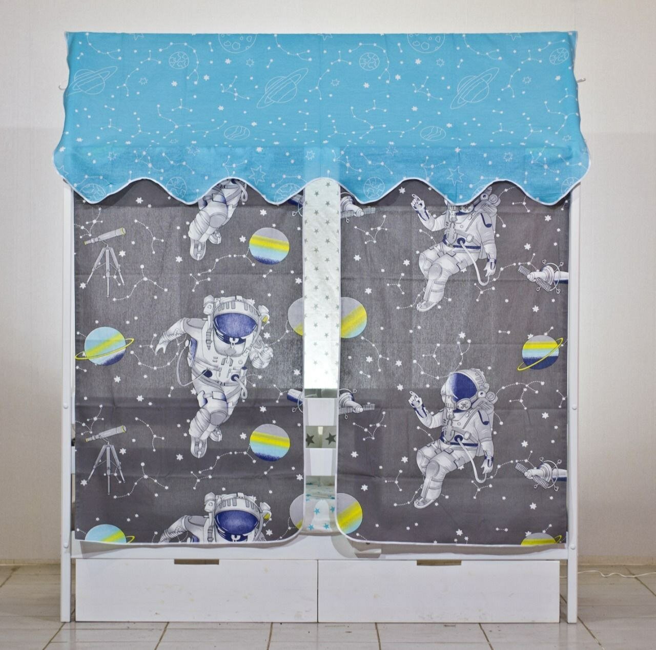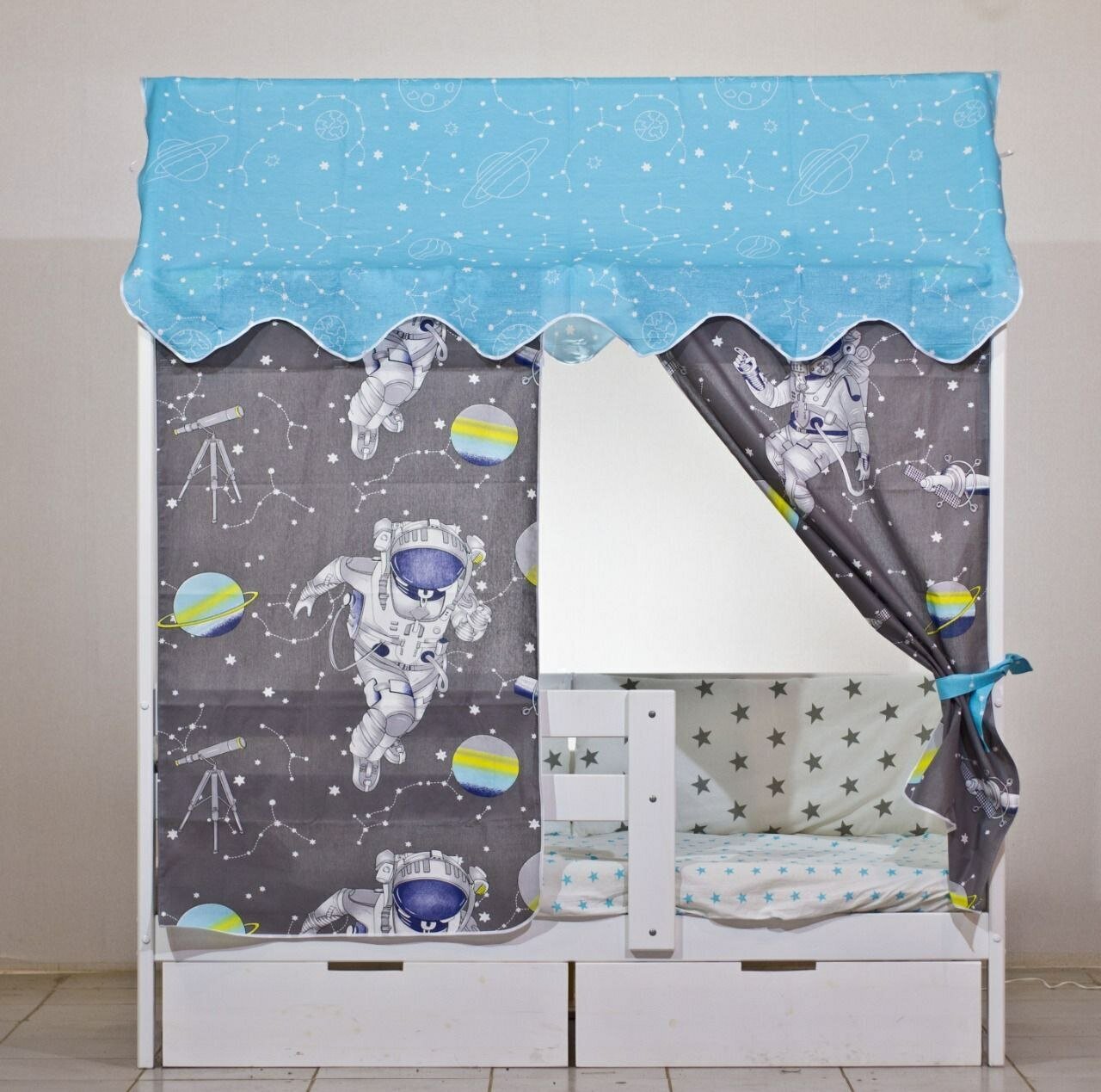 Купить Комплект Крыша — Балдахин и Шторки Текстиль (100% хлопок) Для кровати Домика 160 х 80 / 160 х 70 см (Космонавт) с доставкой по всей России.