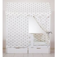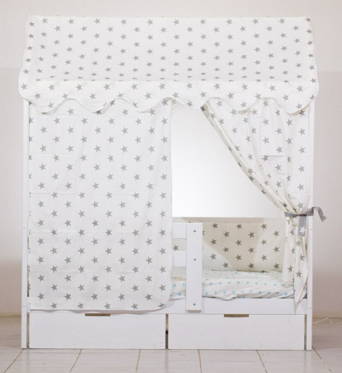 Купить Комплект Крыша — Балдахин и Шторки Текстиль (100% хлопок) Для кровати Домика 160 х 80 / 160 х 70 см (Серые звезды на белом) с доставкой по всей России.