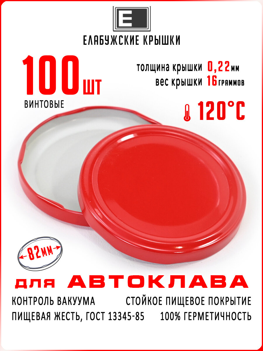 Купить Комплект крышек «Елабужские крышки» Twist-off III-82, 100 шт. для автоклавирования красные (Елабужские крышки для автоклава) с доставкой по всей России.