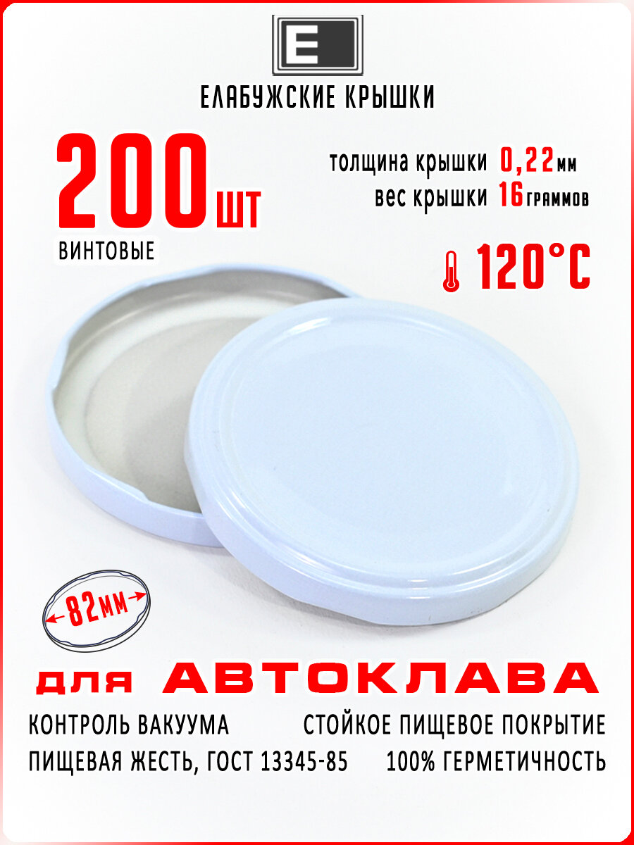 Комплект крышек «Елабужские крышки» Twist-off III-82, 200 шт. для автоклавирования белые (Елабужские крышки для автоклава): сравнение цен, характеристики, фото, актуальное наличие и цены.