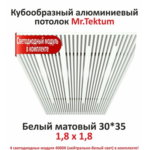 Купить Комплект кубообразного реечного алюминиевого потолка Mr.Tektum 1,8х1,8м (куб 30*35) белый матовый со светодиодным модулем (4 шт*0,9м), нейтрально-белый свет с доставкой по всей России.