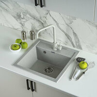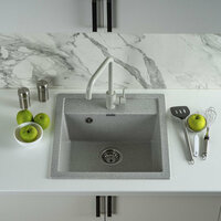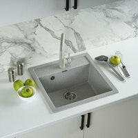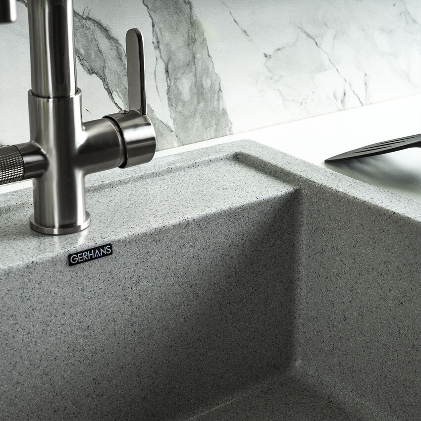 Мойка Gerhans A11-19 серого цвета имеет прямоугольную форму и выполнена в стиле, который подойдет к любому интерьеру кухни. Установка мойки осуществляется врезным способом, что обеспечивает ее надежное крепление и устойчивость.