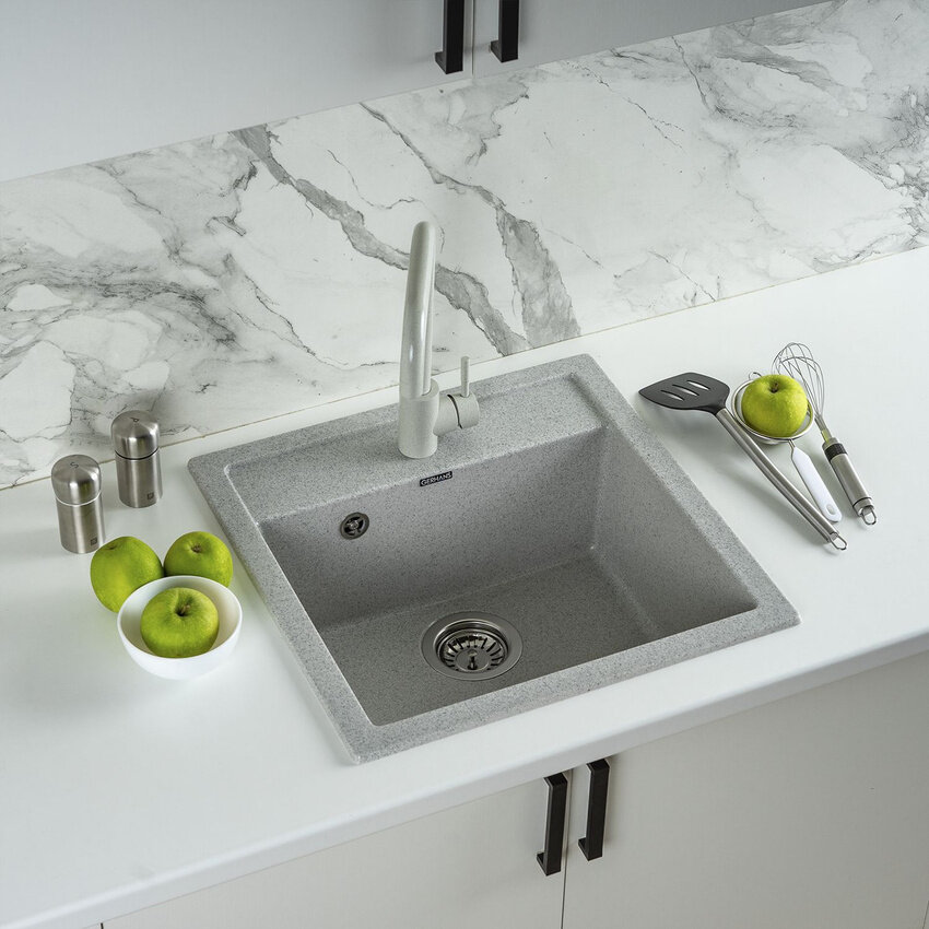 Комплект кухонной мойки Gerhans A11-19 серый (Беларусь) с смесителем W4998-4-19 представляет собой стильное и функциональное решение для вашей кухни. Изготовленная из искусственного гранита, мойка обладает рядом преимуществ, которые сделают ее незаменимой на вашей кухне.