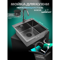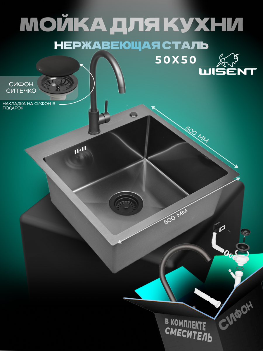 Мойка для кухни нержавеющая 50х50, с PVD покрытием графит. Смеситель, сифон с ситечком.: сравнение цен, характеристики, фото, актуальное наличие и цены.