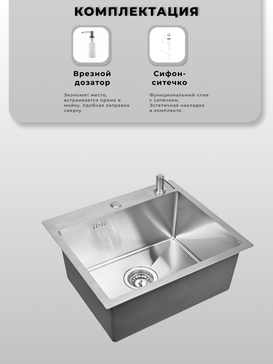 Купить Мойка для кухни нержавеющая 58х48. Сифон с ситечком, дозатор. с доставкой по всей России. Мойка для кухни нержавеющая 58х48. Сифон с ситечком, дозатор.: сравнение цен, характеристики, фото, актуальное наличие и цены.