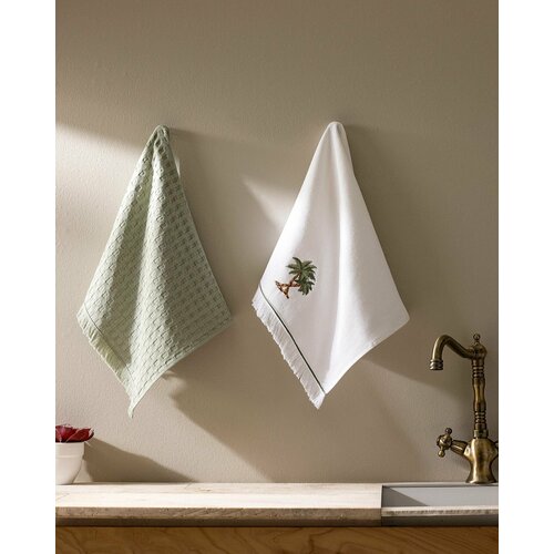 Комплект кухонных полотенец Madame Coco представляет собой стильный и практичный аксессуар для вашей кухни. В наборе вы найдете два полотенца размером 40x60 см каждое, выполненных в белом и зеленом цвете.