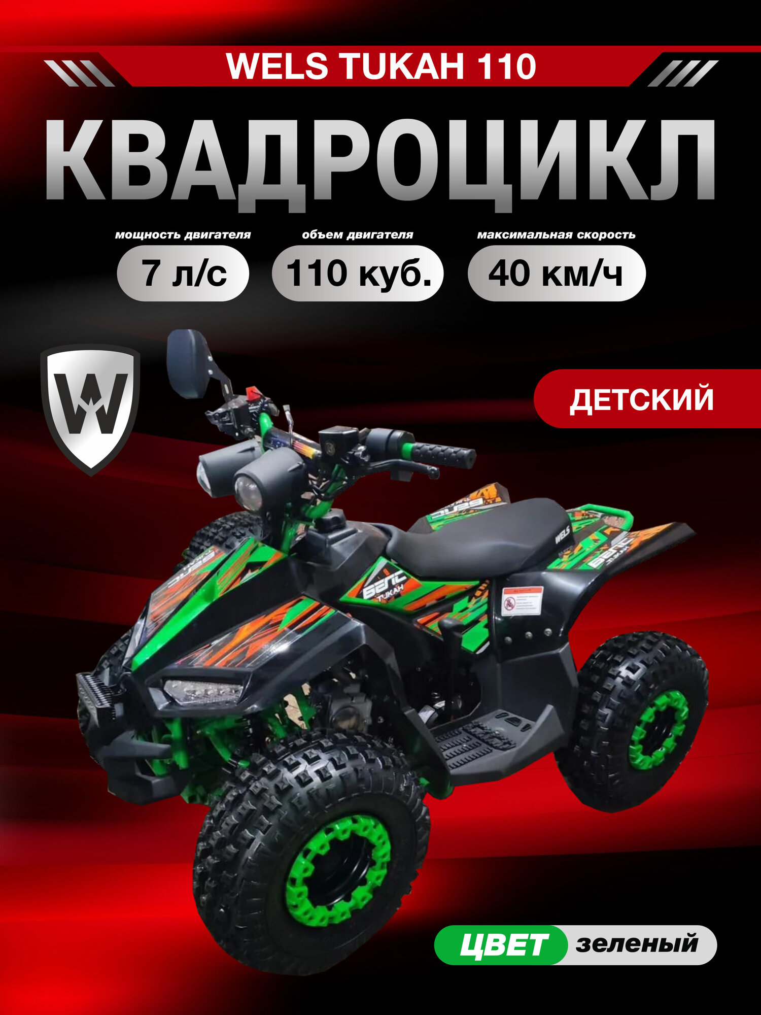 Купить Комплект квадроцикла WELS TUKAH 110 см³, 8 л. с, центробеж. сцепление F-N-R, Зеленый с доставкой по всей России. Комплект квадроцикла WELS TUKAH 110 см³, 8 л. с, центробеж. сцепление F-N-R, Зеленый: сравнение цен, характеристики, фото, актуальное наличие и цены.