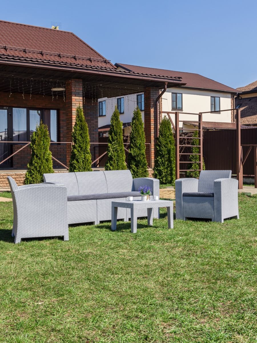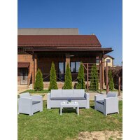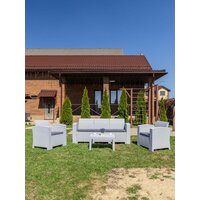 Кресла LANA (2 шт.): Глубина кресла - 65 см. Ширина кресла - 78 см. Высота кресла - 77 см. Глубина сиденья - 49 см. Ширина сиденья - 52 см. Высота сиденья без подушки - 38 см. Высота сидения с подушкой - 43 см. Максимальная нагрузка на кресло - 120 кг. Разборная конструкция - да Подушка в комплекте - да Материал наполнителя подушки - поролон Материал чехла на подушку - полиэстер Материал каркаса - УФ-стабилизированный полипропилен окрашенный в массе с повышенной прочностью Кофейный столик LANA: Размер столика - 70.5 х 50.5 х 38.5 см. Разборная конструкция - да Материал каркаса - УФ-стабилизированный полипропилен окрашенный в массе с повышенной прочностью Диван трехместный LANA: Материал каркаса - УФ-стабилизированный полипропилен окрашенный в массе с повышенной прочностью Подушка в комплекте - да Материал наполнителя подушки - поролон Материал чехла на подушку - полиэстер Размер дивана: Глубина дивана - 65 см. Ширина дивана - 182 см. Высота дивана - 76 см. Глубина сиденья - 49 см. Ширина сиденья - 157 см. Высота сиденья без подушки - 38 см. Высота сидения с подушкой - 44 см. Разборная конструкция - да Максимальная нагрузка на диван - 120 кг.