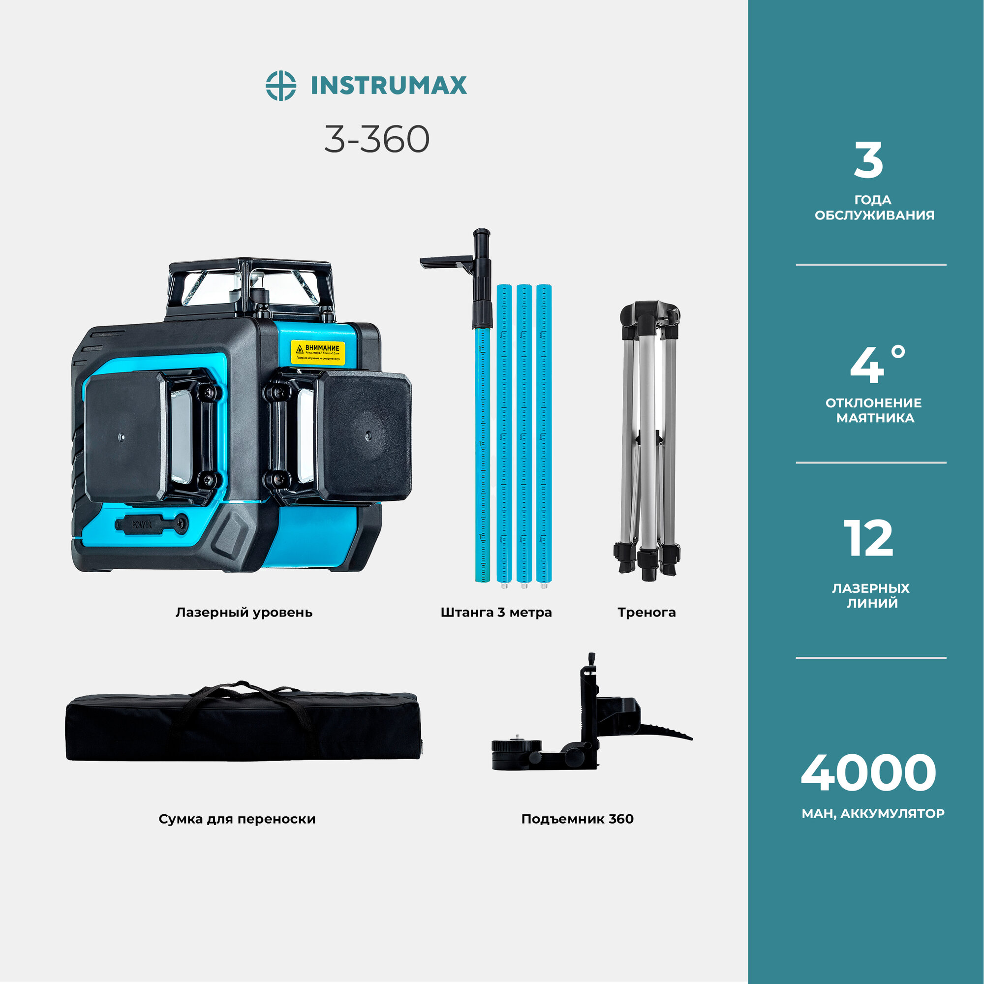 Комплект Лазерный уровень INSTRUMAX 3-360+Штатив-штанга элевационный INSTRUMAX LP-300 в комплекте с треногой (3 м): сравнение цен, характеристики, фото, актуальное наличие и цены.