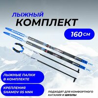 Комплект лыж 160 (с насечкой) с палками (стекловолокно) и креплениями NNN Elva