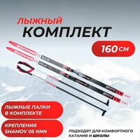 Купить Комплект лыж 160 (с насечкой) с палками (стекловолокно) и креплениями NNN Elva с доставкой по всей России.